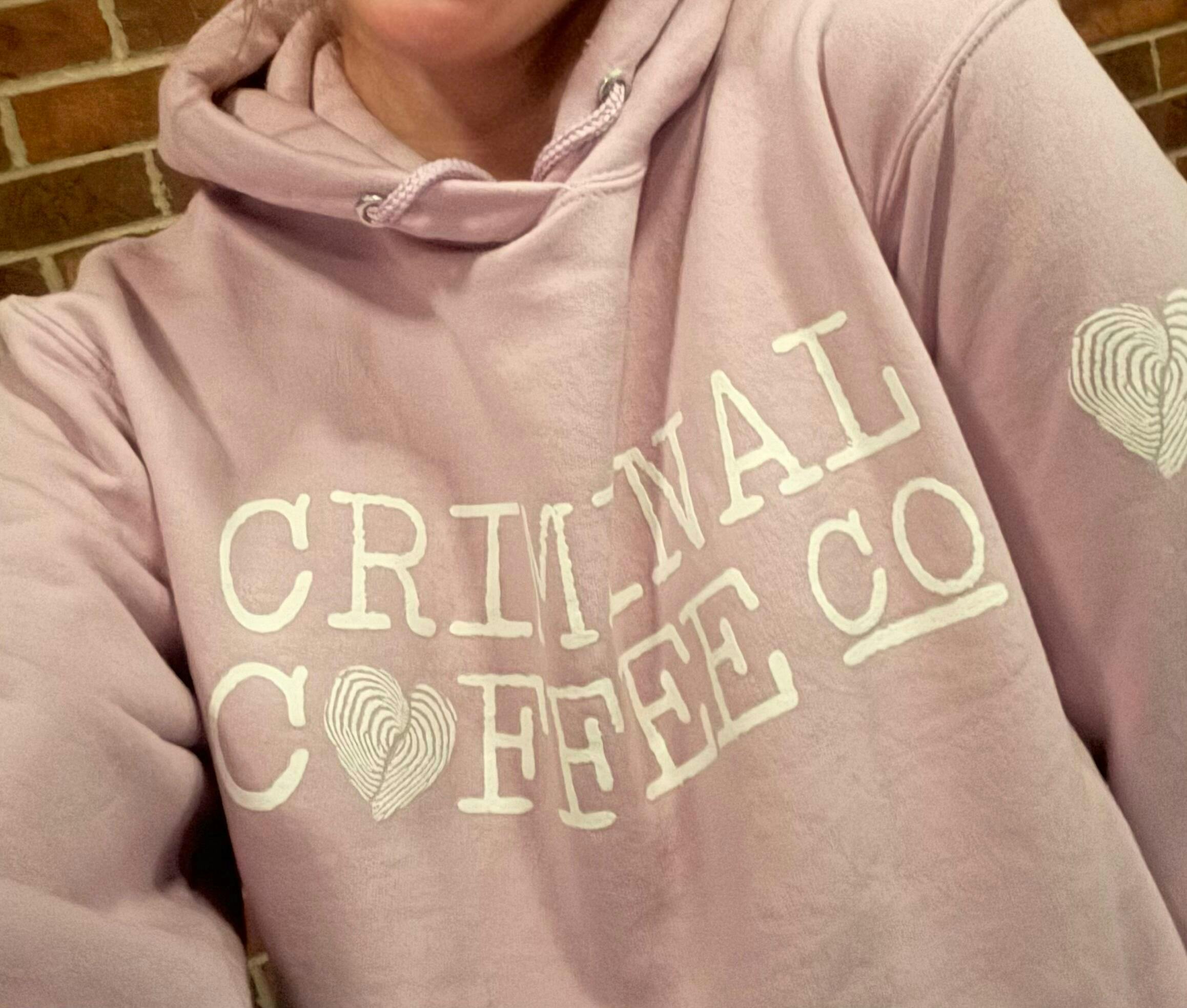 Love our signature hoodie? Want something cute to snuggle up in this Valentine's Day? Check out our limited edition Valentine's Day Criminal Coffee Co. hoodie! Made with the same 50/50 cotton/poly fleece material as our other premium sweatshirts, and sports our signature Criminal Coffee Co. logo - but with a sweet twist. <3 Now also in Purple!